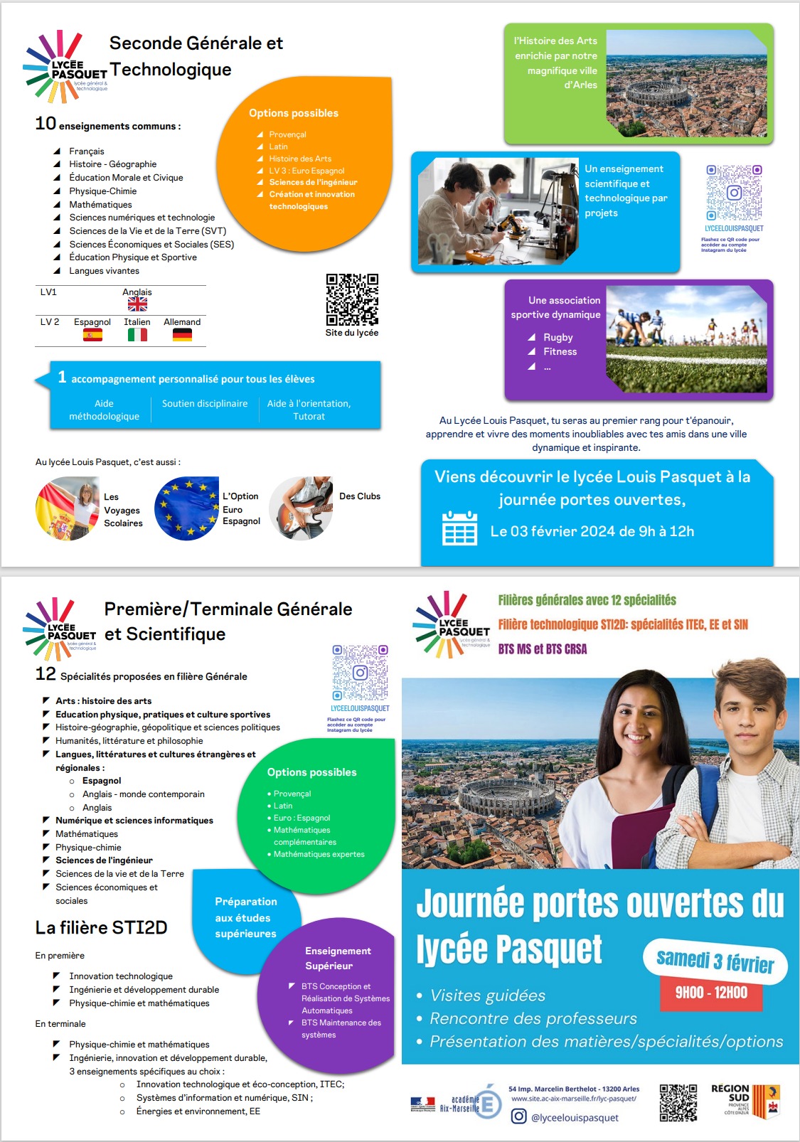 Le lycée Pasquet organise 1/2 journée portes ouvertes du 03 février 2024 de 9h-12h :